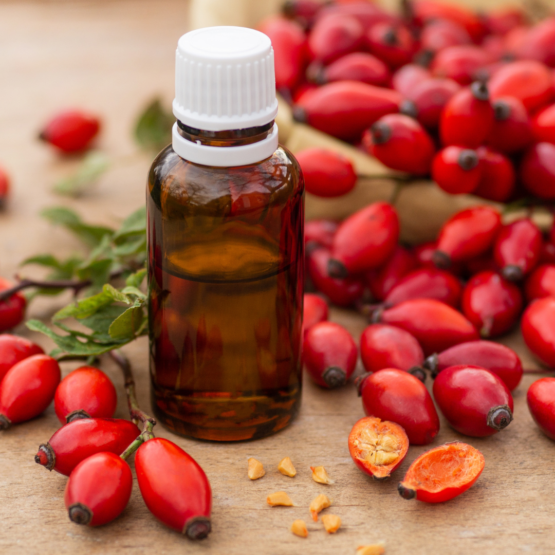Rosehip oil originates from the seeds of wild rosehip fruit, mainly found in regions such as Europe, South America, Africa, and Asia.